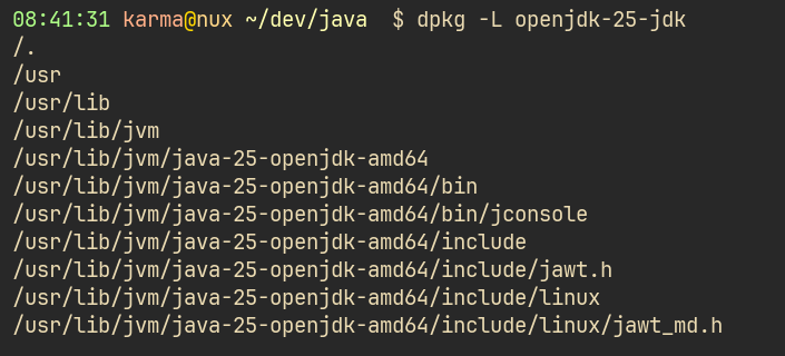 You can easily check where it was installed with dpkg -L openjdk-25-jdk: