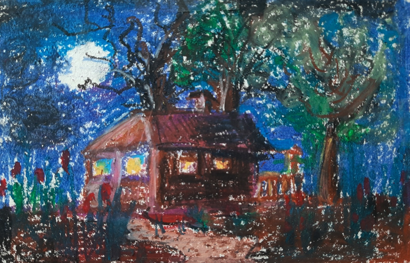 I noticed them on our art shelve and took them down on the kitche table. My little daughter was more than happy to peel them off the paper wrap and I quickly drew the house in the night. This was like drawing my mood. I immediatelly felt better.