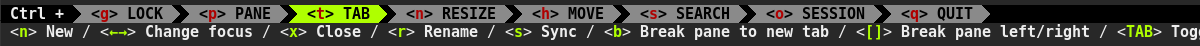 This is what happens when I select Ctrl+t - I enter “tab mode” and I’m able to see what I can do in this context.