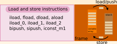 - these instructions (load and store) transfer values between local variables and operand stack of the VM frame