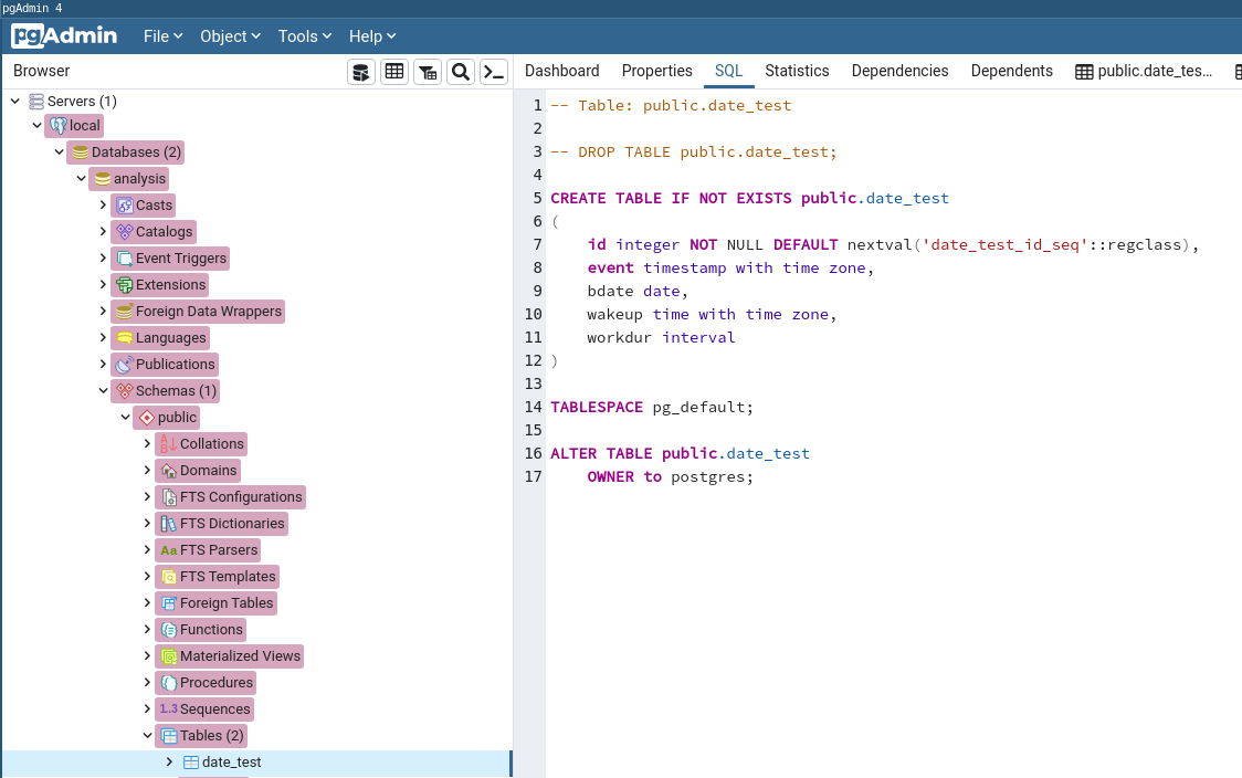 CREATE DATABASE analysis;