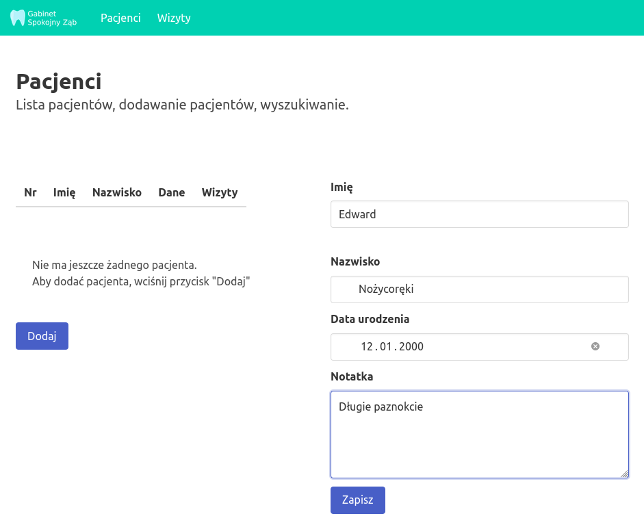 Dodanie pacjenta