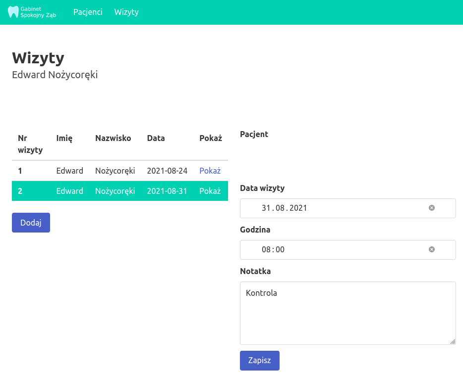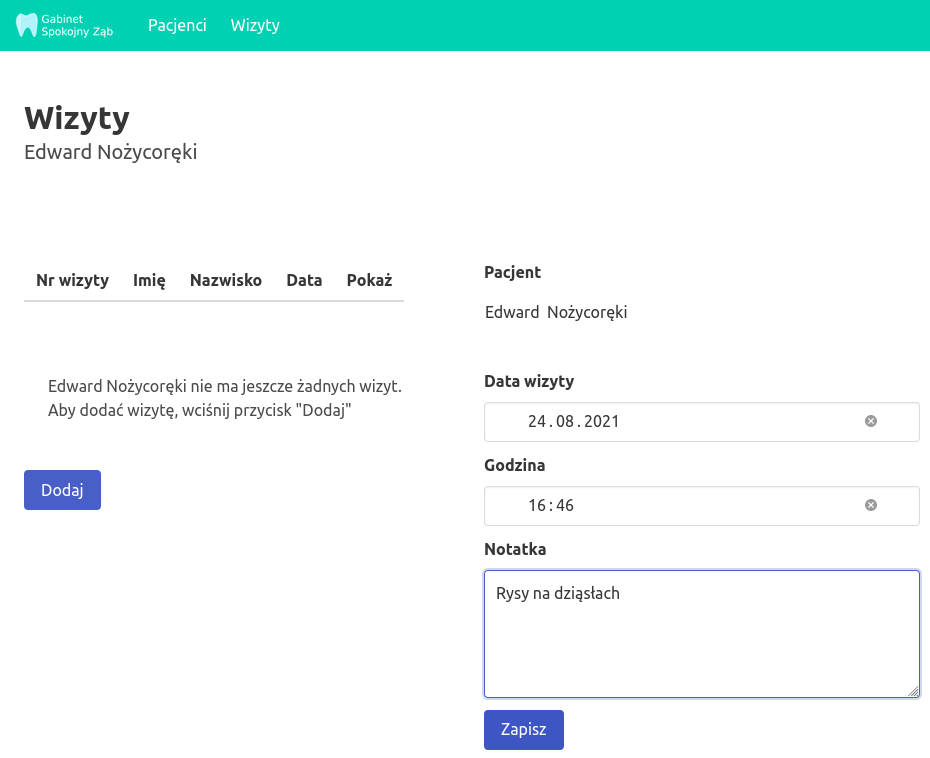 - 2021-23-08 - Gabinet dentystyczny - dodanie wizyt